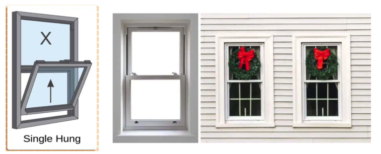 Has two sashes, one fixed sash on top and one moveable sash on the bottom, which can slide up and down. This makes single- hung windows rectangular in shape in a vertical orientation.
