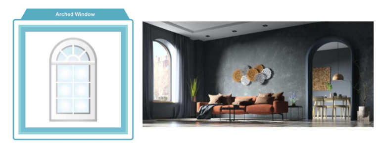 Also called Radius windows, they have an arched shape on the top half and a vertically oriented rectangular shape on the bottom half. They can also be installed in a multi-arch structure with square or rectangle window panes on side.